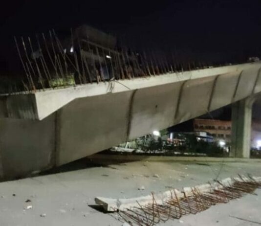 निर्माणाधीन असणारा उड्डाणपुलाचा एक भाग कोसळला: कार मधील फॅमिली थोडक्यात बचावली