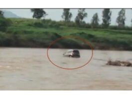 कार नदीच्या पाण्यात पडली ; पोहणे येत असल्याने चालक बचावला