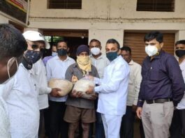 पालकमंत्री यांनी नांदगांव येथील बाधित कुटुंबांची घेतली भेट बाधित कुटुंबांना पालकमंत्र्यांच्या हस्ते अन्नधान्याचे वितरण
