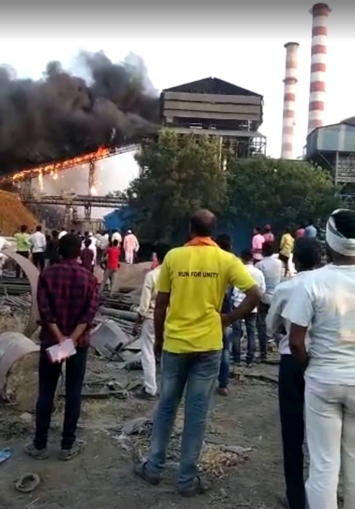 कारखान्यातून धुराचे लाेट येत हाेते. अग्निशमन दलाने पाणी फवारून ही आग काल रात्री उशिरा आटाेक्यात आणली.