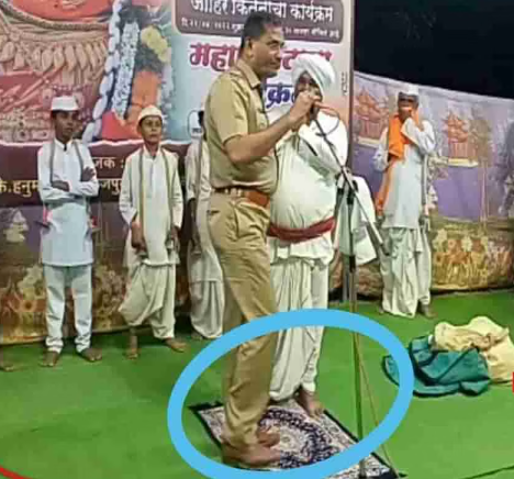 यावेळी शहर पोलीस निरीक्षक के. के. पाटील यांनी सुरू असलेले कीर्तन बंद केले. वारकरी संप्रदायाच्या श्रद्धेचा विषय असेलल्या नारदांच्या गादीवर ते बूट घालून वर चढले. तसेच वारकरी संप्रदायाला खडेबोल सुनावले, असे गावकऱ्यांचे म्हणणे आहे. पोलीस निरीक्षकांचा तसा एक फोटोही व्हायरल झाला आहे.