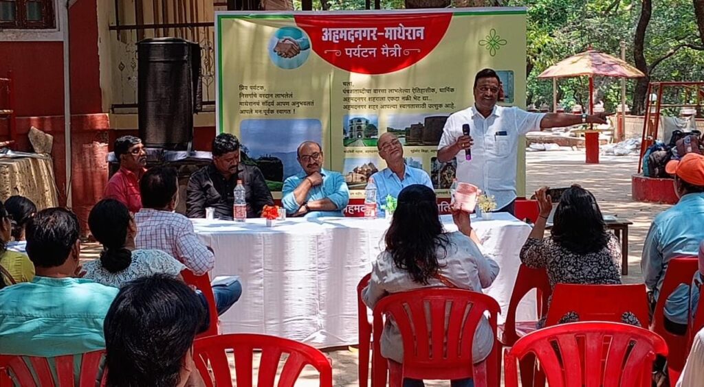 अहमदनगर – पाचशे वर्षांचा धार्मिक व ऐतिहासिक वारसा लाभलेलं अहमदनगर हे खऱ्या अर्थाने समृध्द परंपरा असलेलं शहर असून या शहरातील ऐतिहासिक व धार्मिक स्थळे व त्याचे महत्व ही पर्यटकांना आकर्षित करणारी आहेत.एकेकाळी निजामशाहीची राजधानी, संतांची भूमी असलेल्या या शहरातील विवीध धार्मिक, ऐतिहासिक वास्तूंना पर्यटकांनी भेट द्यावी व या शहराचे इतिहासातील महत्व जाणून घ्यावे यासाठी माथेरानमधे देशाच्या विवीध भागातून येणाऱ्या पर्यटकांना माथेरान प्रतिष्ठानच्या माध्यमातून माथेरानकर अहमदनगरला भेट देण्यासाठी विविध उपक्रमांतून साद घालतील असे प्रतिपादन माथेरान प्रतिष्ठानचे अध्यक्ष व माजी नगराध्यक्ष श्री अजय सावंत यांनी केले.