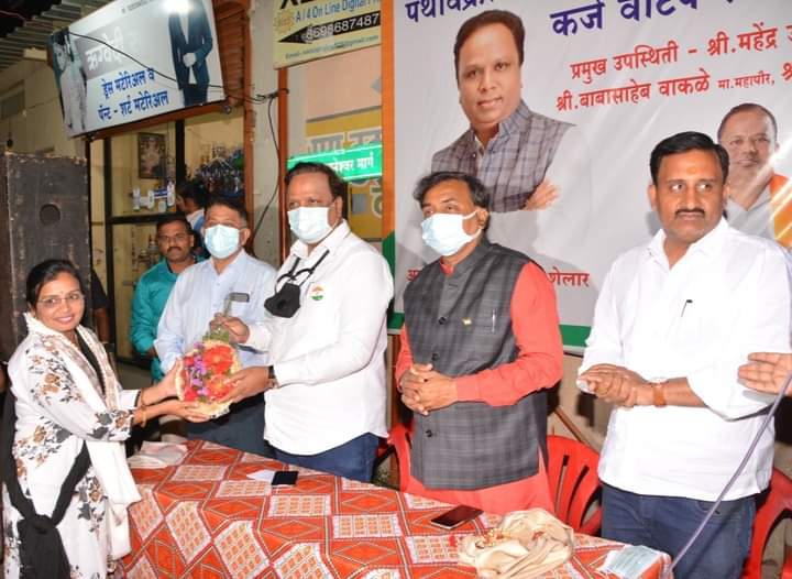 - भिंगार मंडळ आयोजित प्रधानमंत्री आत्मनिर्भर स्वनिधी योजनेच्या कार्डचे वाटप व ॲड शितल सतिष बेद्रे यांचा सत्कार आमदार ॲड.आशिष जी शेलार साहेब यांच्या हस्ते झाले. यावेळी ॲड.आशिष जी शेलार साहेब यांच्या हस्ते ॲड शितल सतिष बेद्रे यांचा सत्कार करण्यात आला.याप्रसंगी जिल्हा अध्यक्ष भैया गंधे, वसंत राठोड आणि किशोर कटोरेआदी उपस्थित होते!