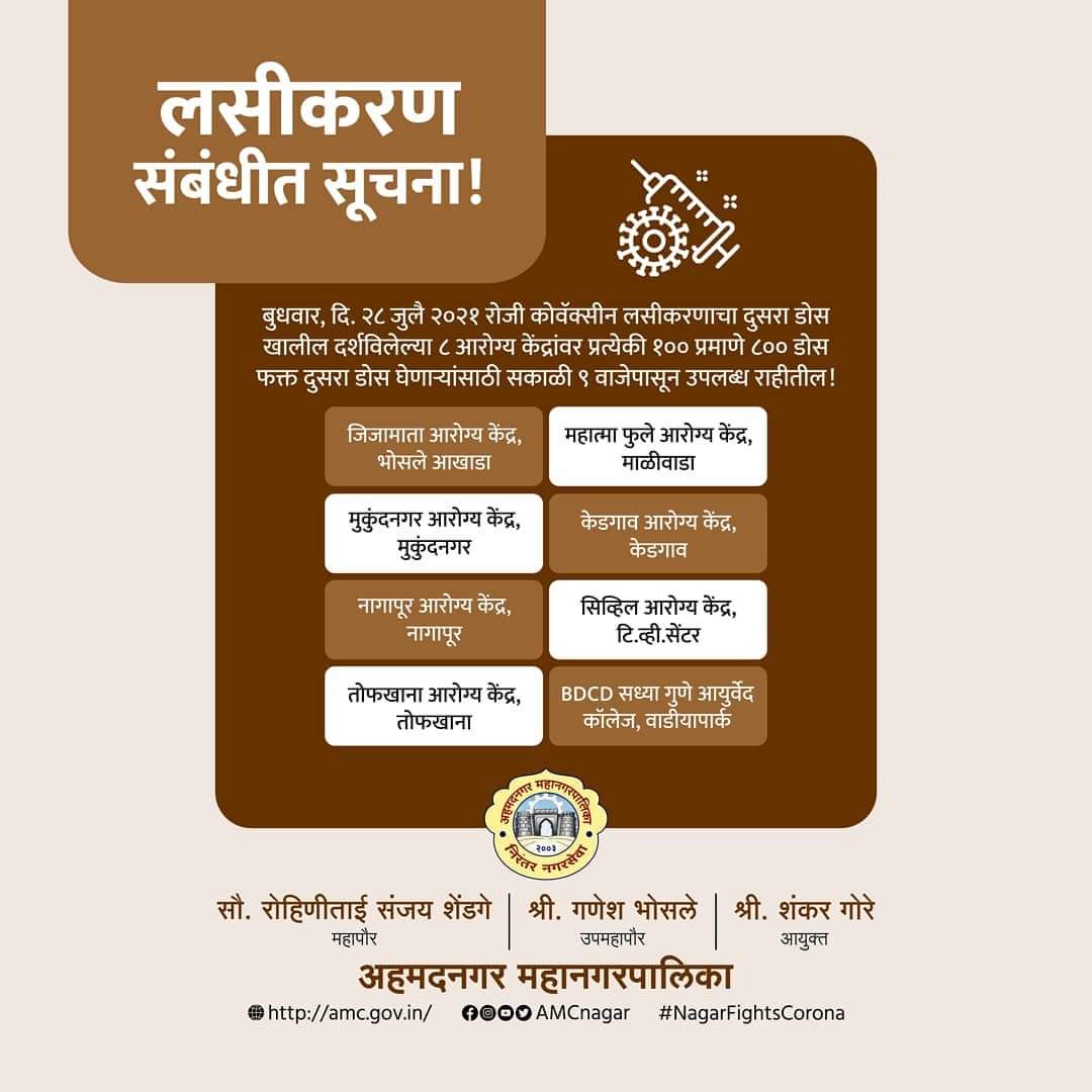 फक्त दुसरा डोस घेणाऱ्यांसाठी सकाळी ९ वाजेपासून उपलब्ध राहीतील!