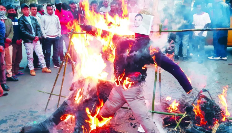 शिलाँग, 26 नोव्हेंबर: मुक्रोह गावात झालेल्या गोळीबाराच्या घटनेवरून सरकारच्या विरोधात दबावगटांची जीभबाजी शनिवारीही मुख्यमंत्र्यांच्या दारात सुरूच राहिली, कारण मुख्यमंत्र्यांच्या गुडवुड बंगल्याजवळ मोठ्या संख्येने पुरुषांनी पुतळे जाळून निषेध व्यक्त केला. मुख्यमंत्री कॉनरॅड संगमा, गृहमंत्री लहकमेन रिंबुई, आसामचे मुख्यमंत्री हिमंता बिस्वा सरमा आणि केंद्रीय गृहमंत्री अमित शहा.