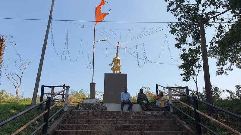 मुख्य रस्त्यावरील मराठीतील पोस्टर छत्रपती शिवाजींचा पुतळा बसवण्याची घोषणा करते. 17व्या शतकातील शासकाचे आणखी एक लहान शिल्प आधीच रस्त्याच्या पलीकडे उभे आहे. पायऱ्यांच्या उड्डाणाच्या शीर्षस्थानी स्थित, हे ठिकाण हिवाळ्यातही, रस्त्यावरून जाणाऱ्यांना कडक उष्णतेपासून आराम देते.