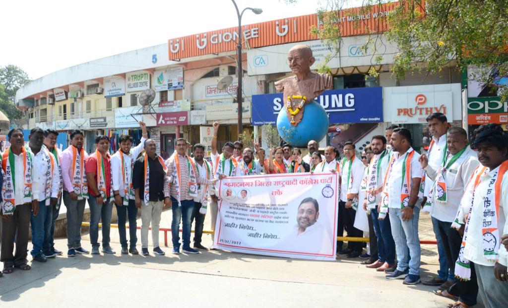 • अहमदनगर (प्रतिनिधी)- अल्पसंख्यांक विकास मंत्री नवाब मलिक यांच्यावर ईडीच्या केंद्रीय पथकाने सूडबुद्धीने केलेल्या कारवाईच्या निषेधार्थ शहरातील महात्मा गांधीजी यांच्या पुतळ्यासमोर राष्ट्रवादी काँग्रेसच्या वतीने निदर्शने करण्यात आली. तर जिल्हाधिकारी कार्यालया समोर या घटनेचा निषेध व्यक्त करण्यात आला.