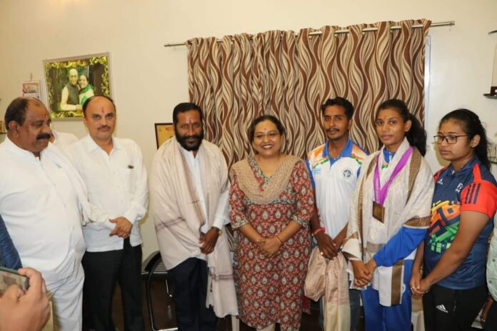पोलंड येथे झालेल्या जागतिक धनुर्विद्या स्पर्धेमध्ये यश मिळवणाऱ्या गुणवंत खेळाडूंचा गौरव महिला व बालविकास मंत्री तथा जिल्ह्याच्या पालकमंत्री ऍड. यशोमती ठाकूर यांच्या हस्ते आज झाला.नांदगाव खंडेश्वर येथील एकलव्य क्रीडा अकादमीची खेळाडू मंजिरी मनोज अलोणे हिने पोलंड येथे झालेल्या जागतिक धनुर्विद्या स्पर्धेमध्ये ब्राँझ मेडल प्राप्त केल्यामुळे तिचा पालकमंत्री श्रीमती ठाकूर यांच्या हस्ते गौरव करण्यात आला. आंतरराष्ट्रीय खेळाडू कु. साक्षी तोटे, एकलव्य गुरुकुलचे मुख्याध्यापक विलास मारोटकर, भारतीय संघाचे कोच अमर जाधव व शिवछत्रपती क्रीडा पुरस्कार प्राप्त सदानंद जाधव गुरुजी यांनाही यावेळी गौरविण्यात आले.