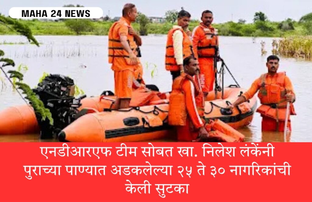 एनडीआरएफ टीम सोबत खा. निलेश लंकेंनी पुराच्या पाण्यात अडकलेल्या २५ ते ३० नागरिकांची केली सुटका