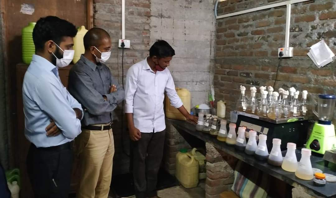 जिल्हाधिकारी षण्मुगराजन एस. यांनी जय किसान शेतकरी गटाच्या ‘फार्मलॅब्ज’ची पाहणी केली. तसेच या प्रयोगशाळेच्या कार्यपद्धतीची माहिती गटाचे अध्यक्ष श्री. घुगे यांच्याकडून जाणून घेतली. या प्रयोगशाळेच्या माध्यमातून ट्रायकोडर्मा, सिव्हीड एक्स्ट्रॅक्ट, निम ऑईल, करंज ऑईल, गांडूळ खत, बायोस्लरी यासारख्या जैविक खतांची निर्मिती केली जात आहे. सध्या या गटातील १८० शेतकरी या जैविक खतांचा वापर आपल्या शेतामध्ये करीत आहे. या खतांच्या वापरामुळे शेतकऱ्यांच्या उत्पादन खर्चात बचत झाली असून निव्वळ उत्पन्नात वाढ झाले. तसेच या खतांमुळे जमिनीचा पोत सुधारण्यासाठी सुद्धा मदत होत असल्याचे गटाचे अध्यक्ष श्री. घुगे यांनी सांगितले.