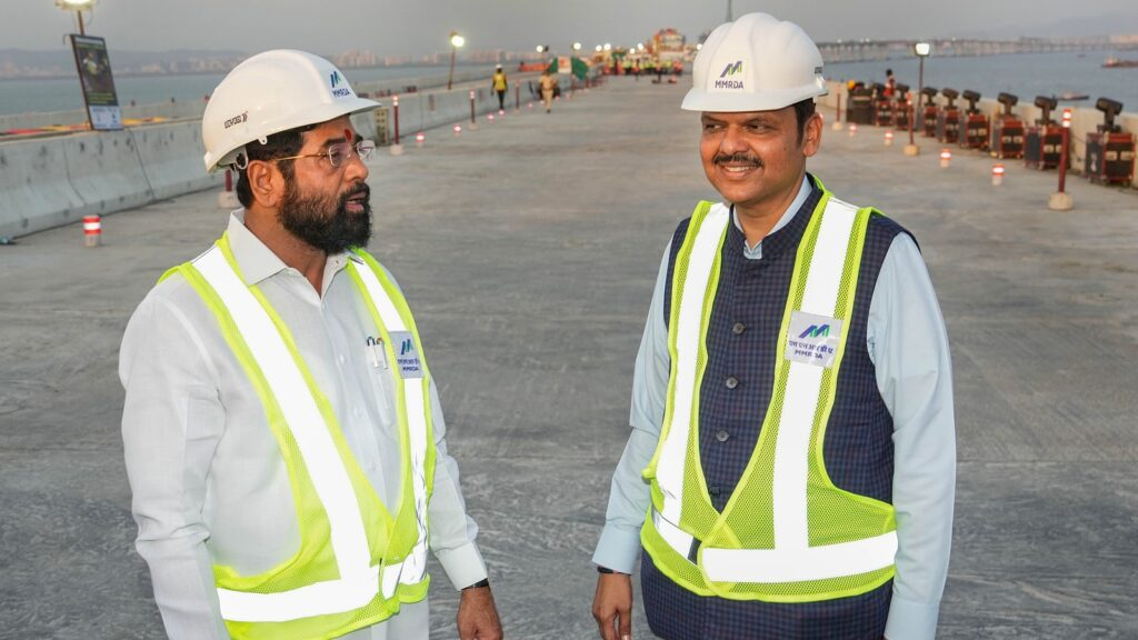 महाराष्ट्राचे मुख्यमंत्री एकनाथ शिंदे आणि त्यांचे उप देवेंद्र फडणवीस यांनी बुधवारी मुंबई ट्रान्स हार्बर लिंक (MTHL) या भारतातील सर्वात लांब सागरी सेतूचा आढावा घेतला, जो नोव्हेंबरमध्ये जनतेसाठी खुला केला जाईल. एमटीएचएलच्या प्रगतीबाबत अद्ययावत माहिती देताना, सागरी सेतूवर गाडी चालवणारे फडणवीस म्हणाले की ते “जवळजवळ तयार आहे.”