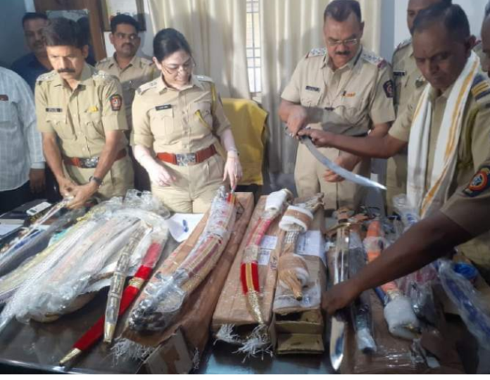 पोलिसांनी कुरिअर कार्यालयात पाहणी केली असता पार्सल बॉक्समध्ये मोठ्या प्रमाणावर तलवारीचा साठा आढळून आला.