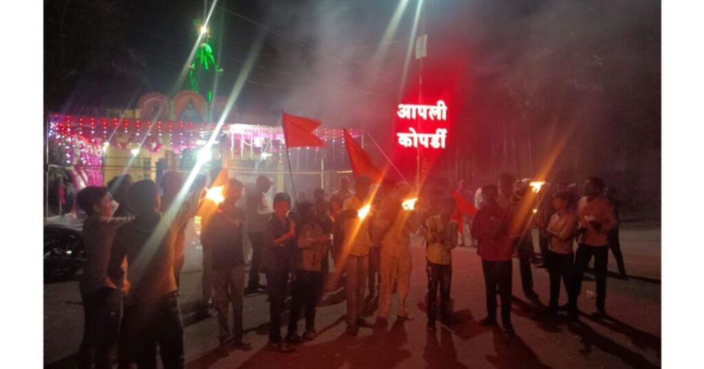 कर्जत : अंतरवाली सराटी (जि. जालना) येथील मराठा आरक्षण (Maratha Reservation) आंदोलकांवर केलेल्या लाठीमार घटनेचा निषेधार्थ तसेच कोपर्डीच्या निर्भया हत्याकांड घटनेचा निकाल लागून देखील तिच्या मारेकऱ्यांना फाशीच्या शिक्षेची अंमलबजावणी झाली नाही. दुष्काळ निवारण उपाययोजनेच्या मागणीसाठी कोपर्डी (Copardy) (ता.कर्जत) येथील ग्रामस्थ मंगळवारी (ता. ५) पासून भैरवनाथाच्या मंदिरासमोर भजन-कीर्तन करीत साखळी उपोषणास बसले आहे. आंदोलनाच्या दुसऱ्या दिवशी ग्रामस्थांनी रात्री कँडल मार्च (Candle March) काढत आपल्या मागण्या मान्य कराव्यात अन्यथा आंदोलन आणखी तीव्र करण्याचा इशारा दिला.
