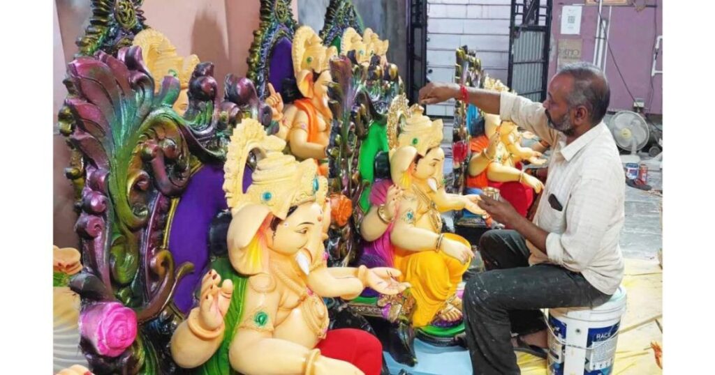 मूर्तीची साफसफाई करण्यासाठी घरातील महिला मदत करतात. तसेच आखणी व रेखणी करण्यासाठी वर्षभर काम करत असल्याचेही भालेराव बंधू यांनी आवर्जुन सांगितले आहे. दरम्यान, बाप्पांच्या आगमनासाठी महिनाभर आधीपासूनच भक्त तयारीला लागतात. मंडप सजावट, मूर्ती, विद्युत रोषणाई, कार्यक्रमांचे आयोजन अशी सगळ्यांची जुळवाजुळव करण्यात सगळेच सध्या व्यस्त असल्याचे पाहायला मिळत आहे.