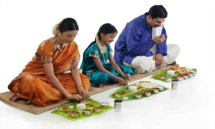 जमिनीवर मांडी घालून बसतो, ती ‘सुखासन’ किंवा ‘पद्मासन’ मुद्रा आहे.. त्यामुळे एकाग्रता वाढते, मानसिक ताण दूर होतो. टेबल-खुर्चीवर बसून जेवल्याने आरोग्याला हा फायदा होत नाही.
