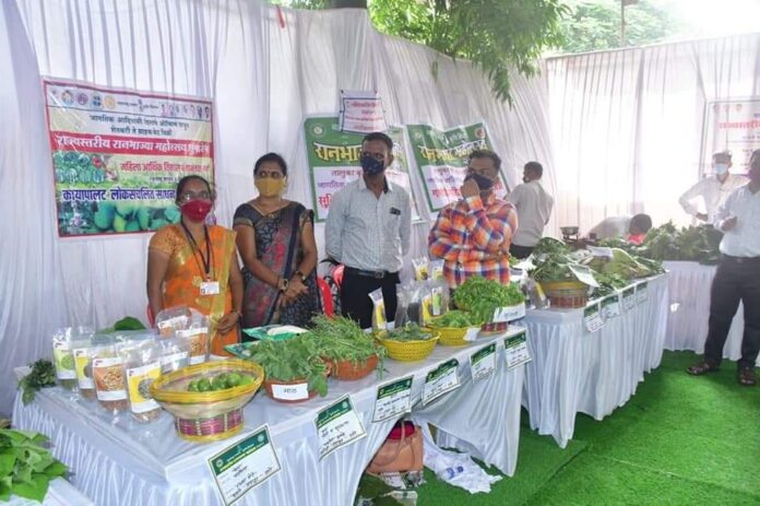 अलिबाग,जि.रायगड,दि.11 (जिमाका) :- दि. 9 ऑगस्ट 2021 रोजी ठाणे येथे जागतिक आदिवासी दिनानिमित्त राज्यस्तरीय रानभाजी महोत्सव आयोजित करण्यात आला होता. या कार्यक्रमामध्ये कृषीमंत्री दादाजी भुसे, नगर विकास मंत्री एकनाथ शिंदे, फलोत्पादन मंत्री संदीपान भुमरे यांनी उपस्थित राहून मार्गदर्शन केले.