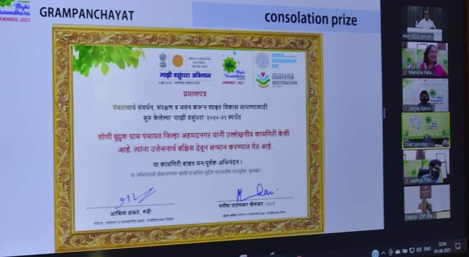 जागतिक पर्यावरण दिनानिमित्त माझी वसुंधरा स्पर्धेत सन 2020-21 या वर्षीच्या पुरस्कारांमध्ये अहमदनगर जिल्ह्याचे घवघवीत यश…