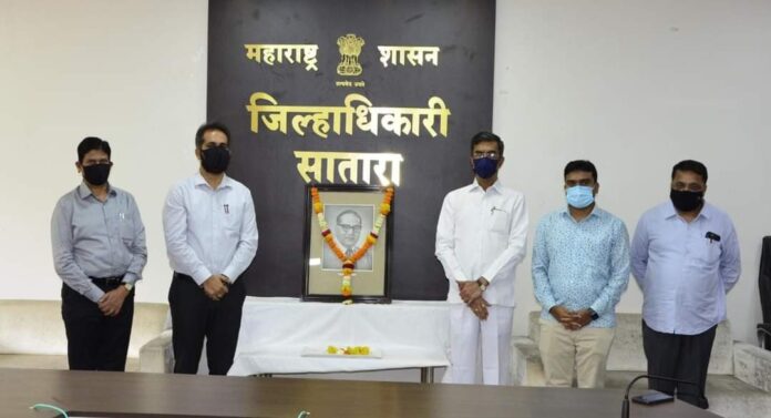 सातारा, दि.14 (जिमाका) : भारतीय राज्यघटनेचे शिल्पकार भारतरत्न डॉ. बाबासाहेब आंबेडकर यांच्या जयंतीनिमित्त त्यांच्या प्रतिमेस गृह (ग्रामीण) राज्यमंत्री शंभूराज देसाई यांनी पुष्पहार अर्पण करुन अभिवादन केले.