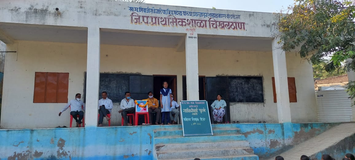 - ?राहुरी तालूक्यातील शेरी चिखलठाण येथील जिल्हा परिषद प्राथमिक शाळेत सावित्रीबाई फुले जयंती साजरी करून अभिवादन करण्यात आले.सावित्रीबाई फुले यांचा जन्म सातारा जिल्हयातील नायगांव या गावी ३ जानेवारी इ. सन १८३१ रोजी जन्म झाला.आईचे नांव लक्ष्मीबाई, वडील खंडोजी नेवसे पाटील स्री स्वातंत्र्य औषधालाही नसलेल्या समाजात व काळात सावित्रीबाईचा जन्म झाला. १ जानेवारी१८४८ रोजी भिडे वाड्यात त्यांनी पहिली मुलींची शाळा काढली ,सावित्रीबाई ह्या मुख्याध्यापीकांचे काम काज पाहत होत्या.सुरुवातीला ५/६ मुली होत्या नंतर १८४८ साली मुलींची संख्या ४०/४५ झाली. प्लेग आजाराच्या काळात सावित्रीबाई नी सेवा केली त्या सेवेत सावित्रीबाईंना प्लेग आजार झाला.१० मार्च १८९७ रोजी निधन झाले.सावित्रीबाई फुले जयंती हि ३ जानेवारी ला दरसाल, दरवर्षीप्रमाणे साजरी करून अभिवादन करण्यात येते.जिल्हा परिषद प्राथमिक शाळा चिखलठाण येथे सावित्रीच्या मुलींनाही सावित्रीबाई फुलेंची जन्म गाथा सांगणारी कुमारी प्रगती संतोषभाऊ काळनर हिने सावित्रीबाई फुले यांच्या जयंतीवर भाषण केले.या वेळी उपस्थित शालेय विद्यार्थी ,मुख्याध्यपक रोडे सर,काकडे सर,गाडेकर सर,नरवडे मैडम ,सारोक्ते सर,बाचकर सर,व शालेय समिती अध्यक्ष, पालक आणि राहुरी तालूका पत्रकार शेख युनुस आदी उपस्थित ,कोरोना प्रादूर्भाव लक्षात घेता ,सोशल डिस्टेनश, मास्क, आदी गोष्टी लक्षात घेऊन सावित्रीबाईंना अभिवादन करुन पुष्पहार अर्पन करून त्यांची जयंती साजरी करण्यात आली.
