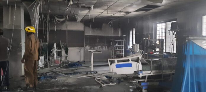 अहमदनगर प्रतिनिधी – सकाळी साडेदहाच्या सुमारास अहमदनगर जिल्हा रुग्णालयाच्या अतिदक्षता विभाग आला भीषण आग लागली या ठिकाणी साधारण 20 ते 25 जण उपचार घेत होते भीषण आग लागल्याने परिस्थिती तनाव जनक निर्माण झाली काही वेळातच अग्निशामक दलाच्या गाड्या त्याठिकाणी दाखल झाल्या इतर रुग्णांच्या नातेवाईकांनी व परिसरातील नागरिकांनी जिल्हा रुग्णालयात जाऊन या अतिदक्षता विभागात धाव घेतली व रुग्णांना बाहेर काढण्याचे काम सुरू केले संपूर्ण आय.सी.यु जळून खाक झाले.अद्याप किती जण मृत्यू पावले याबाबत जिल्हा रुग्णालय कडून स्पष्टीकरण देण्यात आले नाही सदर घटनास्थळी आमदार संग्राम जगताप दाखल होऊन रुग्णांवर तातडीने उपचार करण्याच्या सूचना दिल्या तर काही गंभीर रुग्णांना खाजगी रुग्णालयात हलवण्याची गरज असल्यास तातडीने संबंधित रुग्णांना हलवा अशा सूचना त्यांनी दिल्या व या घटनेची सखोल माहिती पालकमंत्री हसन मुश्रीफ, पोलीस अधीक्षक मनोज पाटील, जिल्हा जिल्हाधिकारी यांना सदर घटनेची माहिती दिली.