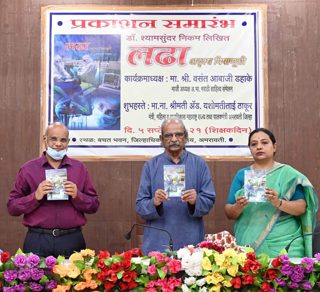गेले दीड पावणेदोन वर्षे आपण कोरोना विषाणूशी लढा देत आहोत. जिल्हा प्रशासन आणि आरोग्य यंत्रणेत कार्यरत प्रत्येक घटकांच्या समन्वयामुळे कोरोनाला मात देणे शक्य झाले. यादरम्यान उद्भवलेल्या परिस्थितीत डॉ.निकम यांनी केलेले नियोजन आणि संयमाने प्रत्येक समस्येचे केलेले निराकरण प्रशंसनिय आहे. कोरोना काळात प्रत्येक दिवसातील अनुभवाच्या विस्तृत नोंदी श्री.निकम यांनी पुस्तकरूपाने आज आपल्यासमोर आणल्या. अनुभवाचे हे संकलन आरोग्य क्षेत्रात कार्यरत सर्वांना मार्गदर्शक ठरेल असा विश्वास श्रीमती ठाकूर यांनी व्यक्त केला. जिल्हा शल्य चिकीत्सक डॉ. श्यामसुंदर निकम लिखीत 'लढा अदृश्य विषाणूशी' या पुस्तकाचे महिला व बालविकास मंत्री तथा जिल्ह्याच्या पालकमंत्री ॲड.यशोमती ठाकूर यांच्या हस्ते आज प्रकाशन करण्यात आले.