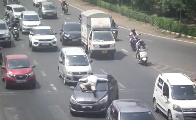 मुंबई: ड्रग्जच्या अंमलाखाली असलेल्या एका व्यक्तीने महाराष्ट्रात सुमारे दहा किलोमीटरपर्यंत एका वाहतूक पोलिसाला त्याच्या कारच्या विंडशील्डवर ओढले. आज दुपारी दोनच्या सुमारास घडलेली संपूर्ण घटना सीसीटीव्ही कॅमेऱ्यात कैद झाली आहे.