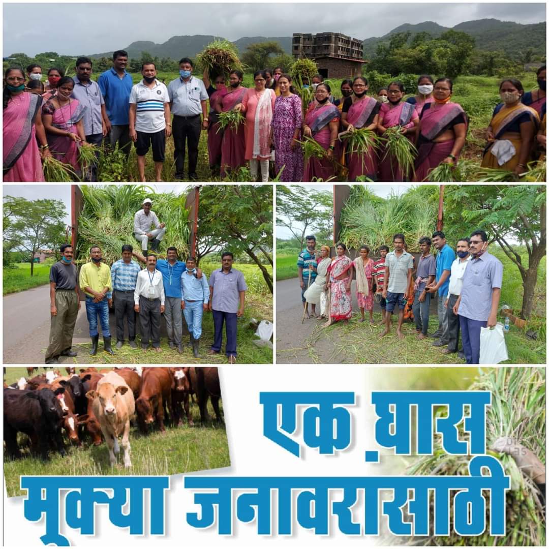 मात्र जिल्हा परिषद अधिकारी-कर्मचाऱ्यांनी मिळून हा प्रश्न सोडविण्याचा स्तुत्य प्रयत्न केला. या दृष्टीने विचार करीत मुख्य कार्यकारी अधिकारी डॉ. किरण पाटील यांच्या प्रोत्साहनातून जिल्हा परिषदेतील सर्व अधिकारी कर्मचारी एकत्र आले व त्यांनी दि.2 ऑगस्ट रोजी “सहाण” या गावी सकाळी 9.00 वाजेपासूनच हातात विळा घेऊन चक्क चारा कापणीला सुरुवातच केली, आणि बघता बघता 25 टन चारा पूर व दरडग्रस्त भागातील नऊ गावांसाठी रवानाही केला.