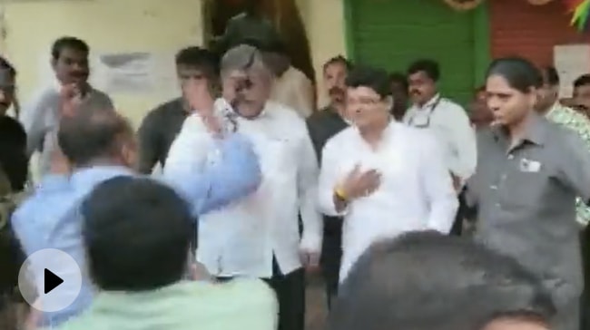 एका व्हिडीओमध्ये एक माणूस अचानक पाटील यांच्यासमोर येतो आणि मंत्री इमारतीतून बाहेर पडत असताना त्यांच्या चेहऱ्यावर शाई फेकताना दिसत आहे.