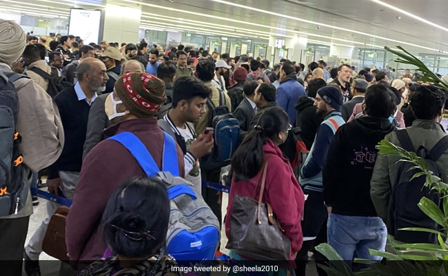 ट्विटरवर पोस्ट केलेल्या फोटोंमध्ये दिल्ली आंतरराष्ट्रीय विमानतळावर गर्दी दिसत आहे. सुरक्षा तपासणीसाठी प्रदीर्घ प्रतीक्षा आणि विमानतळ कर्मचार्यांच्या गैरव्यवस्थापनाबद्दल प्रवाशांनी कुरकुर केल्याच्या बातम्या होत्या.