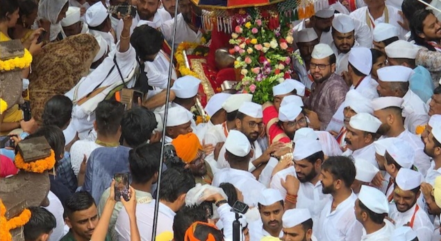 जगद्गुरु संत तुकाराम महाराजांचा 340 वा पालखी प्रस्थान सोहळा मोठ्या भक्तिमय वातावरणात पार पडला आहे. ह्या पालखी प्रस्थान सोहळ्याला वरूण राजाने देखील हजेरी लावल्याचं चित्र पाहायला मिळाले आहे. दुपारी 3.58 च्या सुमारास पालखीने मंदिराबाहेर प्रस्थान ठेवले आहे. पालखीचा आजचा मुक्काम इनामदार वाड्यात असणार आहे. पालखीचे उद्या पिंपरी चिंचवड शहरात आगमन होणार आहे.