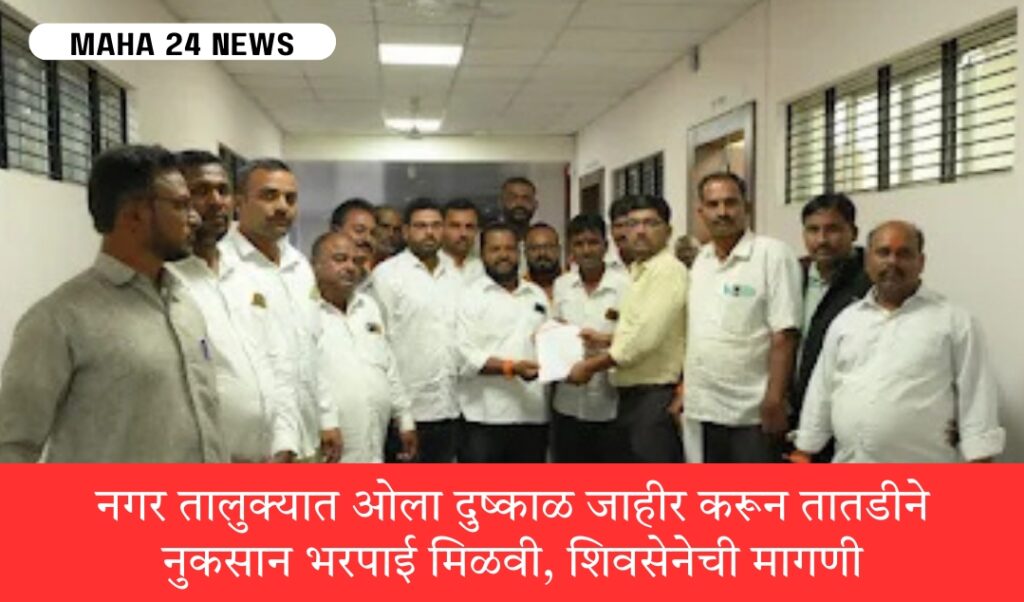 नगर तालुक्यात ओला दुष्काळ जाहीर करावा. व तहसीलदारांमार्फत ताबडतोब सर्व मंडळातील सरसकट नुकसान भरपाईचे पंचनामे करून शेतकऱ्यांना सरसकट नुकसान भरपाई मिळावी. अन्यथा शिवसेना स्टाईलने तीव्र आंदोलन करण्यात येईल असा इशारा देण्यात आला. यावेळी नगरसेवक योगीराज गाडे, संदीप गुंड, निसार शेख, आप्पासाहेब भालसिंग संतोष काळे, जालिंदर शिंदे, संजय भालसिंग, संदीप खामकर, गणेश कुलट, सोमनाथ कांडके, कैलास कुलट, पोपट निमसे, जिवा लगड, योगेश लांडगे, सनी लांडगे, रविराज जाधव यावेळी उपस्थित होते.