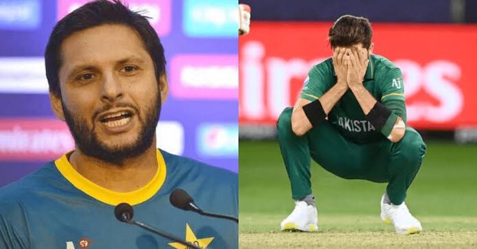 दुबई : सेमीफायनलसारख्या (Semi final between Pakistan vs Australia) अत्यंत महत्त्वाच्या सामन्यात पाकिस्तान संघाला ऑस्ट्रेलियाकडून पराभव पत्करावा लागला आहे. अगदी हाता-तोंडाशी आलेला सामना पाकिस्तानने गमावला आहे. विशेष म्हणजे या पराभवात एक षटक पाकिस्तानला महाग पडलं आहे. हे षटकं म्हणजे पाकिस्तानकडून टाकण्यात आलेलं 19 वं षटक. जे त्यांचा ‘स्टार’ गोलंदाज शाहीन आफ्रिदीने (Shaheen Afridi) टाकलं. शाहीनने या एका षटकात तब्बल 22 धावा देत सामना गमावला. पण याचवेळी तिसऱ्या चेंडूवर ऑस्ट्रेलियाचा मॅथ्यू हसन अलीच्या हस्ते झेलबाद झाला असता. पण त्याच्या हातून हा झेल सुटला. ज्यामुळे अनेकांनी हसनलाही पराभवाचा जबाबदार ठरवलं. पण पाकचा माजी खेळाडू शाहीदने त्याचं मत स्पष्ट करत शाहीनलाच पराभवास कारणीभूत ठरवलं आहे.