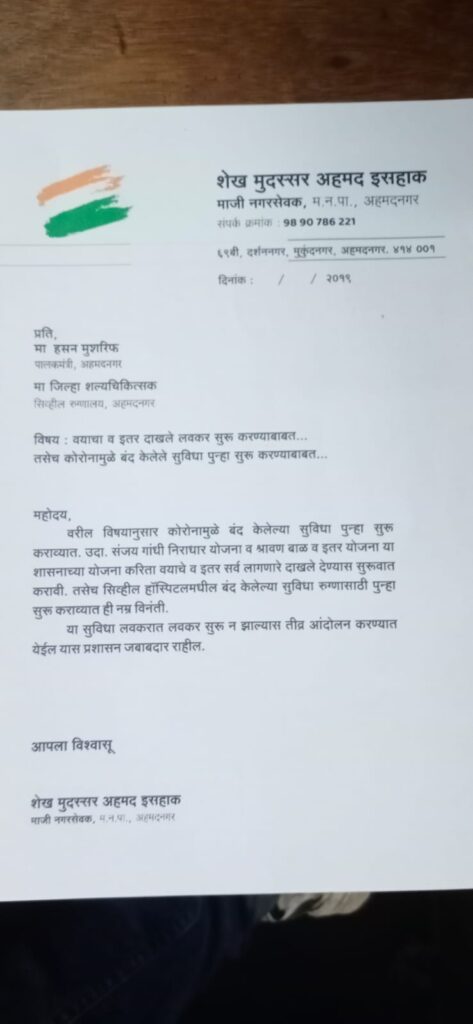 healthमहाराष्ट्रअहमदनगर पालकमंत्री हसन मुश्रीफ यांना निवेदन | पहा सविस्तर बातमी By इम्रान - August 14, 2021 1048 Facebook Twitter Google+ Pinterest WhatsApp पालकमंत्री हसन मुश्रीफ यांना निवेदन | पहा सविस्तर बातमी