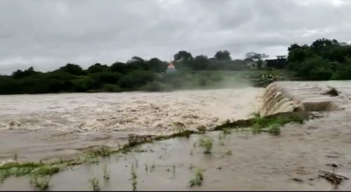 जिल्ह्यातील वडवणी तालुक्यातील राजेवाडी येथील बंधारा दुथडी भरून वाहत आहे. तर परळी, बीड, गेवराई आणि माजलगाव तालुक्यात चांगल्या पावसाने हजेरी लावलीय.