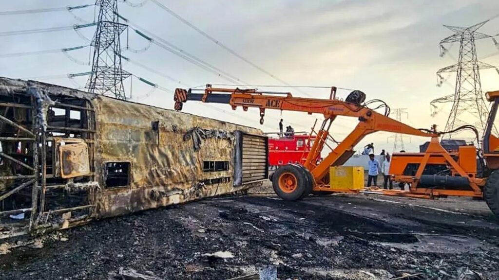 आजच्या घटनेत एका खाजगी बसला रस्ता दुभाजकाला धडकून आग लागली.