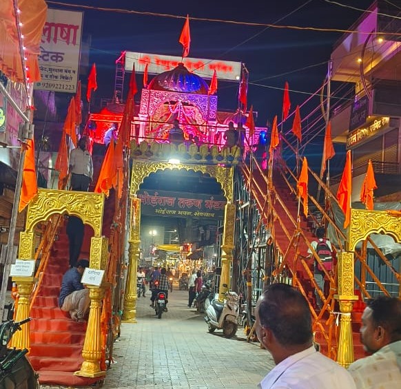 याबाबत सविस्तर वृत्त असे की यंदाच्या नवरात्र उत्सवामध्ये शेवगाव शहरातील ऐतिहासिक भोईराज मित्र मंडळ यांचा सुंदर माहूरगड माता मंदिर उभारणी मख्य बाजारपेठेमध्ये भोईराज पंच मंडळाच्या समोरील एका उंच मनोऱ्यावर स्थापना केल्याने आकर्षक विद्युत रोषणाई आणि आरास केल्याने शेवगाव शहरासह तालुक्यातील देवीच्या भाविक भक्तांचे लक्ष वेधून घेत आहेत महिला आणि आबालविरुद्ध या देवीच्या दर्शनासाठी गेल्या आठ दिवसापासून गर्दी करत आहेत हा देखावा तयार करण्यासाठी मंडळाचे खालील कार्यकर्त्यांनी अपार मेहनत घेतली मंडळाचे सदस्य कमलेश लांडगे, दिगंबर काथवटे, किरण भोकरे, ईश्वरशेठ काथवटे, अमोल घोलप, मारुतीराव चव्हाण, मनोज कांबळे, सुरेश हुशार, मुकुंद काका भोकरे, दत्ता गवते, सागर काथवटे, रितेश हुशार, महेश गवते, सुरज काशिद, विजय काथवटे, संदिप लांडगे, राकेश चव्हाण, गणेश कळंबे, देविदास हुशार, सुरेश भोकरे, संदिप काथवटे, संदिप हुशार, सुरेश लांडगे, अजय कांबळे,जय भोकरे, अंजु काथवटे, स्वप्निल लांडगे,कुणाल चव्हाण,अक्षय भोकरे, सतिष गुणवंत, योगेश गुणवंत, निलेश तिकोणे, संतोष तिकोणे, महेश / भोकरे, आकाश भोकरे, अनिल काटकर, सोमनाथ काटकर, किरणG काटकर, अंनत काटकर, नागेश लांडगे, कुमार लांडगे,सागर लांडगे, आकाश गुणवंत,[20 नागनाथ हुशार, काशिनाथ हुशार अंनद शिनगारेरमेश गुणवंत, अनिल कांबळे, सागर शिनगारे,संजय काथवटे, सचिन काथवटे, मनोज काथवटेसंजय काशिद, कुमार तात्या भोकरे किरण शिनगारे किरण गव गणेश काथवटे संभाजी शिनगारे या कार्यकर्त्यांनी तन मन आणि देवीची पूजा अर्चा आणि स्थापना केली भोईराज मित्र मंडळ वर्षभर अनेक सामाजिक आणि धार्मिक उपक्रम राबवत असते.
