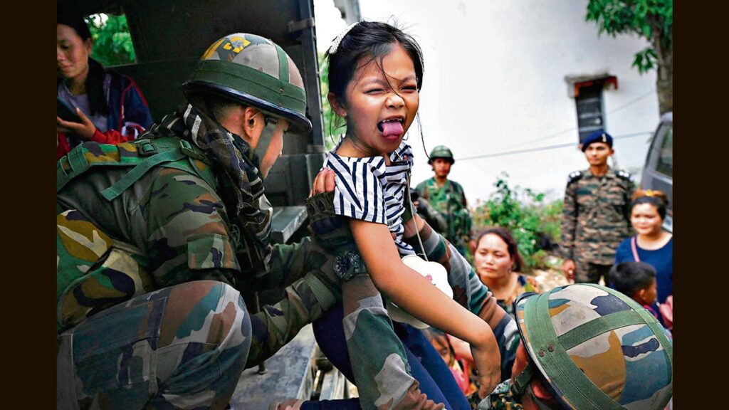 आसाम रायफल्सने सोमवारी चंदेल जिल्ह्यातील भारत-म्यानमार सीमेजवळील फायसेनजांग येथून अडकलेल्या ९६ लोकांना विमानातून बाहेर काढले. 4 मे रोजी चकमकी सुरू झाल्यापासून या सर्वांचे आसाम रायफल्सच्या छावणीत पुनर्वसन करण्यात आले होते, परंतु छावणीच्या दुर्गमतेमुळे आणि त्यांची योग्य काळजी घेण्यासाठी त्यांना भारतीय हवाई दलाच्या एमआय 17 हेलिकॉप्टरचा वापर करून बाहेर काढण्यात आले.