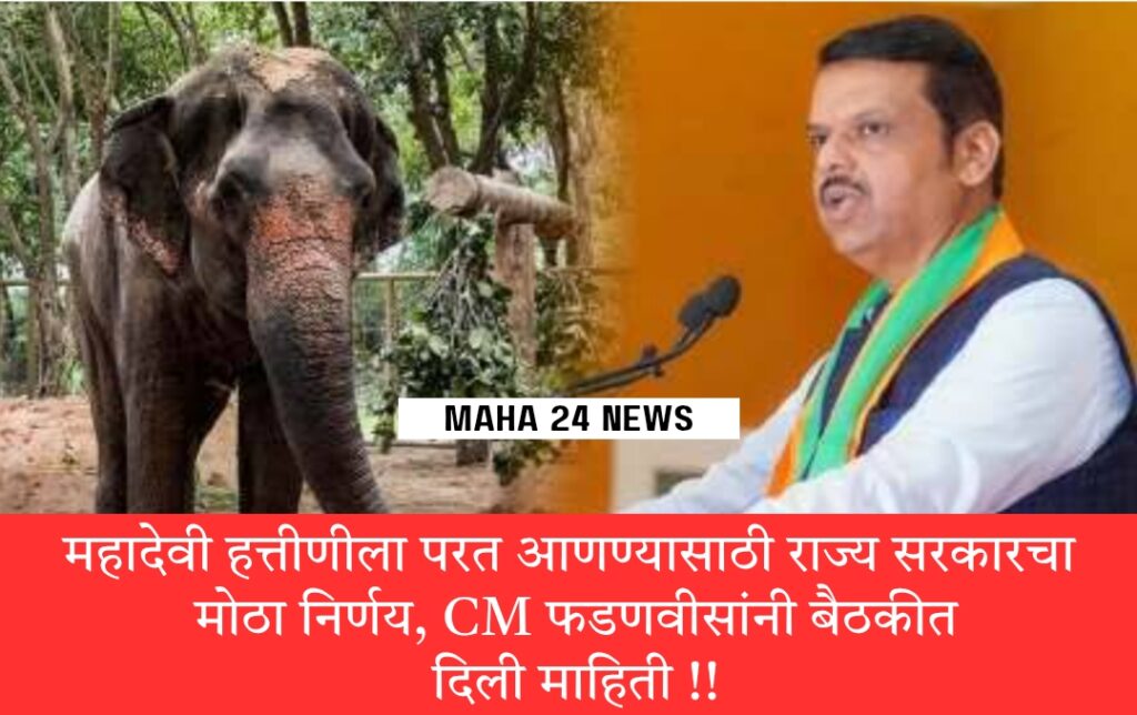 महादेवी हत्तीणीला परत आणण्यासाठी राज्य सरकारचा मोठा निर्णय, CM फडणवीसांनी बैठकीत दिली माहिती !!