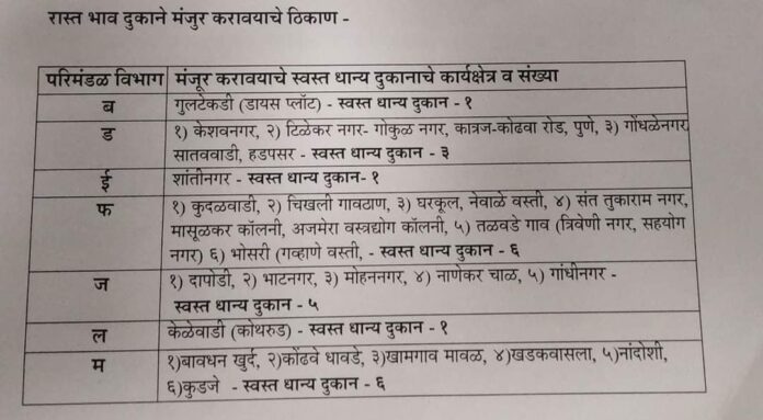 विहित नमुन्यातील कोरे फॉर्म रक्कम रुपये ५/- इतके शुल्क संबंधित परिमंडळ कार्यालयात जमा केल्यानंतर दिले जाणार आहे. प्रत्येक रास्त भाव दुकान परवाना मिळणेसाठी अर्जदार यांनी स्वतंत्र फॉर्म भरणे आवश्यक आहे. अर्जासोबत जोडावयाची कागदपत्रे, अटी व शर्तीबाबत व इतर अनुषंगिक माहिती परिमंडळ कार्यालयात व अन्नधान्य वितरण कार्यालयाच्या नोटीस बोर्डावर पाहावयास उपलब्ध असणार आहे.