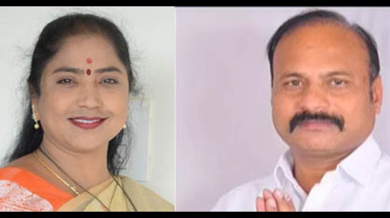 यादीतून वगळलेल्या खानापूरच्या आमदार रेखा नाईक यांनी मंगळवारी काँग्रेसमध्ये प्रवेश करणार असल्याची घोषणा केली, तर बीआरएसच्या तिकीटासाठी इच्छुक असलेले त्यांचे पती श्याम नाईक यांनी सोमवारी काँग्रेसमध्ये प्रवेश केला. (DC प्रतिमा)