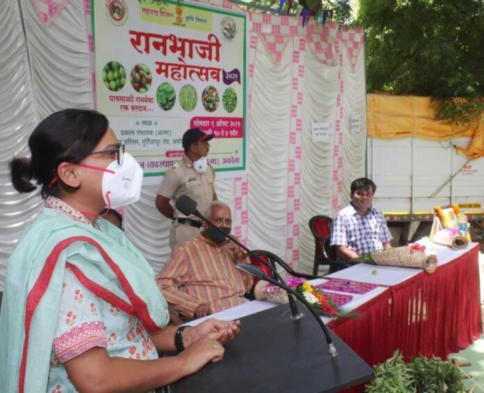 अकोला, दि.९(जिमाका)- राज्याचे कृषीमंत्री दादाजी भुसे यांच्या संकल्पनेतून रानभाज्यांचा महोत्सव प्रत्येक जिल्ह्यात आयोजित करण्यात येत आहे. अकोला येथे यंदाही प्रकल्प संचालक (आत्मा) कार्यालयाच्या आवारात रानभाज्या महोत्सव आज आयोजित करण्यात आला. या महोत्सवास अकोलेकरांनी उत्स्फूर्त प्रतिसाद देत, मुक्त हस्ते खरेदी केल्याने महोत्सवात ४५ हजार रुपयांची रानभाज्यांची विक्री झाली.
