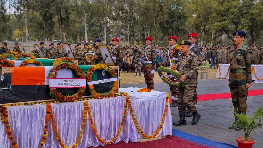 रविवारी राजौरी येथे पुष्पहार अर्पण समारंभ आयोजित करण्यात आला होता आणि मृतदेह त्यांच्या घरी पाठवले जातील, असे लष्कराच्या एका अधिकाऱ्याने मृतदेह नातेवाईकांच्या ताब्यात देण्यात विलंब झाल्याबद्दल तपशील न देता सांगितले. वृत्तानुसार, चारपैकी तीन सैनिकांचे मृतदेह शिरच्छेद करण्यात आले. ओळखीच्या पलीकडे छिन्नविछिन्न झालेल्या मृतदेहांची ओळख पटवण्यासाठी सैनिकांच्या कुटुंबीयांना राजौरी येथे बोलावण्यात आले आणि तेथेच अंतिम संस्कार करण्याची विनंती करण्यात आली. कुटुंबीयांनी राजौरी येथे मृतदेहावर अंत्यसंस्कार करण्यास नकार दिल्यानंतर, मृतदेह त्यांच्या मूळ गावी नेण्याची व्यवस्था करण्यात आली.