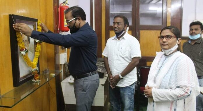 अकोला,दि.1 (जिमाका)- लोकशाहीर अण्णाभाऊ साठे यांच्या जयंतीदिनानिमित्त जिल्हाधिकारी कार्यालयात त्यांना अभिवादन करण्यात आले. येथील लोकशाही सभागृहात लोकशाहीर अण्णाभाऊ साठे यांच्या प्रतिमेस निवासी उपजिल्हाधिकारी संजय खडसे यांच्या हस्ते पुष्पहार अर्पण करण्यात आला. यावेळी जिल्हाधिकारी कार्यालयाचे अधिक्षक मिरा पागोरे, कर्मचारी व अधिकारी उपस्थित होते.