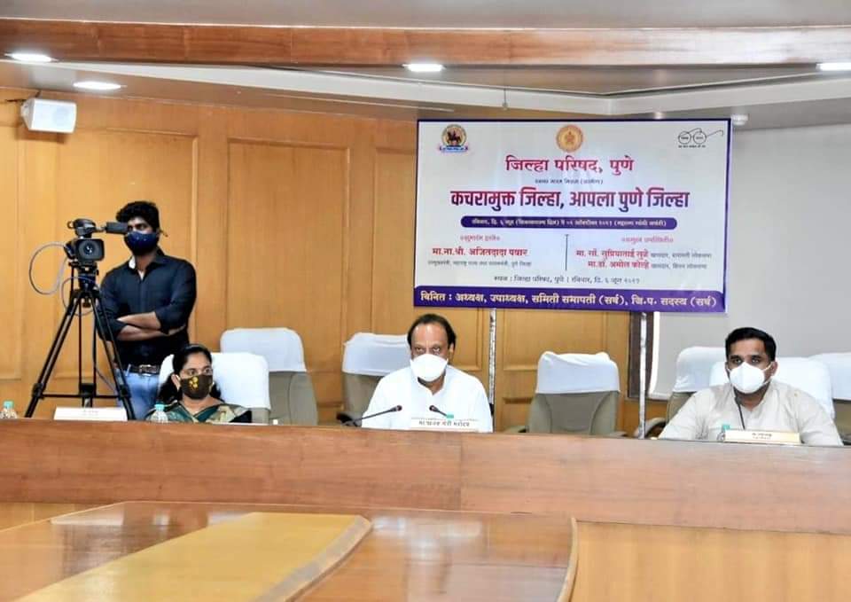 शिवस्वराज्य दिनी ‘कचरामुक्त पुणे जिल्हा’ मोहिमेचा शुभारंभ आज करण्यात आला. हे अभियान शिवस्वराज्य दिन ते गांधी जयंती या दरम्यान राबवण्यात येणार आहे. अभियान गावागावात घराघरात पोहोचवण्यासाठी जिल्ह्यातील सर्व अधिकारी, कर्मचारी, लोकप्रतिनिधींनी प्रयत्न करावेत. आज राज्यभर शिवशक राजदंड स्वराज्यगुढी उभारुन आपण शिवछत्रपती शिवाजी महाराजांच्या विचारांवर निष्ठा ठेवून काम करण्याचा संकल्प करुया. महाराष्ट्राला आणखीन महान राष्ट्र बनवण्यासाठी एकजूटीनं व एकदिलानं काम करा, असं आवाहन आहे. हे अभियान पुणे जिल्ह्याच्या आरोग्य, आर्थिक, सामाजिक विकासाला बळ देईल. छत्रपती शिवरायांनी, जिजाऊ माँसाहेबांनी वसवलेल्या पुण्याचा गौरव वाढवण्याचा काम करेल, याची मला खात्री आहे. सन २०१६ मध्ये पुणे जिल्हा परिषदेनं शिवराज्याभिषेक दिन साजरा करण्याचा ठराव केला होता. आज तोच शिवराज्याभिषेक दिन राज्यस्तरावर शिवस्वराज्य दिन म्हणून साजरा करण्याचा निर्णय महाविकास आघाडी सरकारनं घेतला. ही जिल्हा परिषदेसाठी आनंदाची बाब आहे. शिवस्वराज्य दिनाच्या निमित्तानं आपण राज्यातील प्रत्येक जिल्हा परिषद, पंचायत समिती आणि ग्रामपंचायतमध्ये शिवस्वराज्य गुढी उभारत आहोत. ही गुढी छत्रपती शिवाजी महाराजांच्या विचाराची पताका आहे. अभिमान, स्वाभिमानाची ही पताका आपल्याला कायम फडकवत ठेवायची आहे. कोरोना संकटातून आपल्याला राज्याला, देशाला बाहेर काढायचं आहे. सध्या ग्रामीण भागात वाढता कोरोनाचा प्रादुर्भाव लक्षात घेता कोरोनामुक्त गाव ही स्पर्धा राज्य शासनानं जाहीर केली आहे. या स्पर्धेच्या माध्यमातून ग्रामीण भागातल्या कोरोनामुक्तीच्या कामाला प्रोत्साहन मिळेल. तज्ज्ञांनी कोरोनाच्या तिस-या लाटेचा इशारा दिला आहे. खबरदारी म्हणून प्रत्येक गावात ३०-३० बेडची कोरोना केंद्र उभारत आहोत. पंधराव्या वित्त आयोगातून कोरोनाच्या उपाययोजना करण्यासाठी निधी देण्यात आला आहे. त्यामुळे ग्रामीण भागात कोरोनाप्रतिबंधित उपाययोजना प्रभावीपणे राबवण्यास मदत होईल. महिला धोरणांबाबत राज्य नेहमी अग्रेसर आहे. मुलींना १२ वीपर्यंतचे शिक्षण मोफत, राज्य परिवहन महामंडळाच्या बसने मोफत प्रवासासाठी क्रांतीज्योती सावित्रीबाई फुले योजना सुरु केली आहे. कचरामुक्त, गावस्वच्छता, नालेसफाई, एक कुटुंब एक शोषखड्डा मोहिमेमध्ये जिल्ह्यानं सर्वोत्तम कामगिरी करण्यासाठी प्रयत्न करावे. पुणे शहर, पिंपरी चिंचवड महानगरपालिका शेजारील गावांची कचरा समस्याबाबत महापालिका आणि ग्रामपंचायतींनी विशेष प्रयत्न करावे.