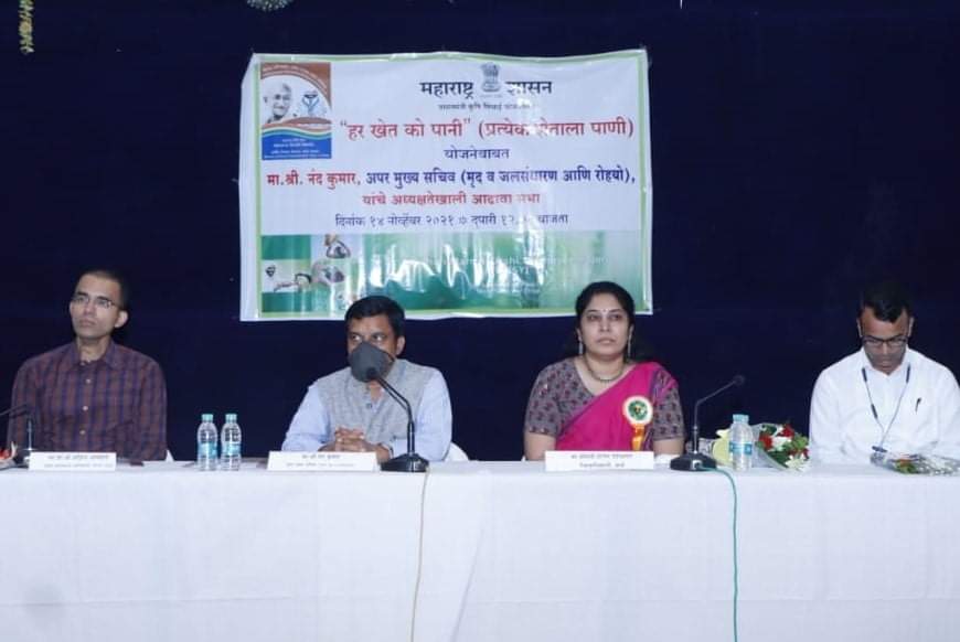 असेही त्यांनी पुढे बोलतांना सांगितले. यावेळी आपले मनोगत व्यक्त करतांना जिल्हाधिकारी प्रेरणा देशभ्रतार यांनी जिल्हयातील सिंचनाचे क्षेत्र वाढविण्यात येत असल्याचे सांगितले. मृद व जलसंधारण तसेच रोहयोच्या कामात जिल्हा निश्चितच चांगली कामगिरी करेल आणि यासाठी सर्व यंत्रणा आपल्या सर्व कार्यक्षमतेने सहकार्य करतील असे सांगितले.