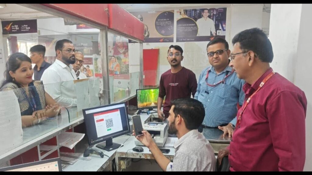 “नागरिकांना आवाहनः आपल्या जवळच्या पोस्ट ऑफिसमध्ये व्यवहार करताना रोख रकमेऐवजी (Cash) खालील पर्यायांचा वापर कराःQR कोड स्कॅन (UPI)डेबिट कार्ड / क्रेडिट कार्डआपला वेळ वाचवा, डिजिटल व्हा !
