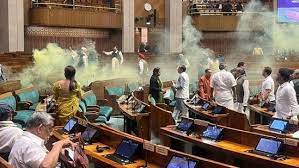 यावेळी त्यांच्या गटातील नीलम देवी आणि अमोल शिंदे या दोन सदस्यांनी संसदेबाहेर निदर्शने केली आणि ‘तानाशाही नही चलेगी’ अशा घोषणा देत रंगीत स्मोक बॉम्ब हवेत सोडले.