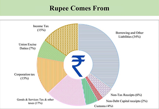 उर्वरित आठ पैसे नॉन-टॅक्स रिसिट्स आणि बिगर डेट कॅपिटल रिसिट्समधून येतात.