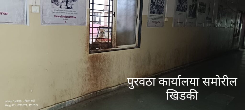 गेल्या आठवड्यात शाशन आपल्या दारी मोठ्या थाटात संपन्न झाला पण “स्वच्छता शासनाच्या दारी केव्हा येणार” काही महसुलाचे कर्मचारीच कार्यालयाच्या भिंती रंगवण्यात बिझी आहेत “असं म्हणतात सहा सहा शिपाई आहेत” पण साहेब कोण आणि शिपाई कोण काही काळत नाही पूर्वी पांढरे स्वच्छ कपडे घातलेला तहसीलचा शिपाई असे आता तहसील कार्यालयात शिपाई ओळखुन दाखवा आणि हजार रुपये बक्षीस मिळवा स्पर्धा भरवायला काही हरकत नाही