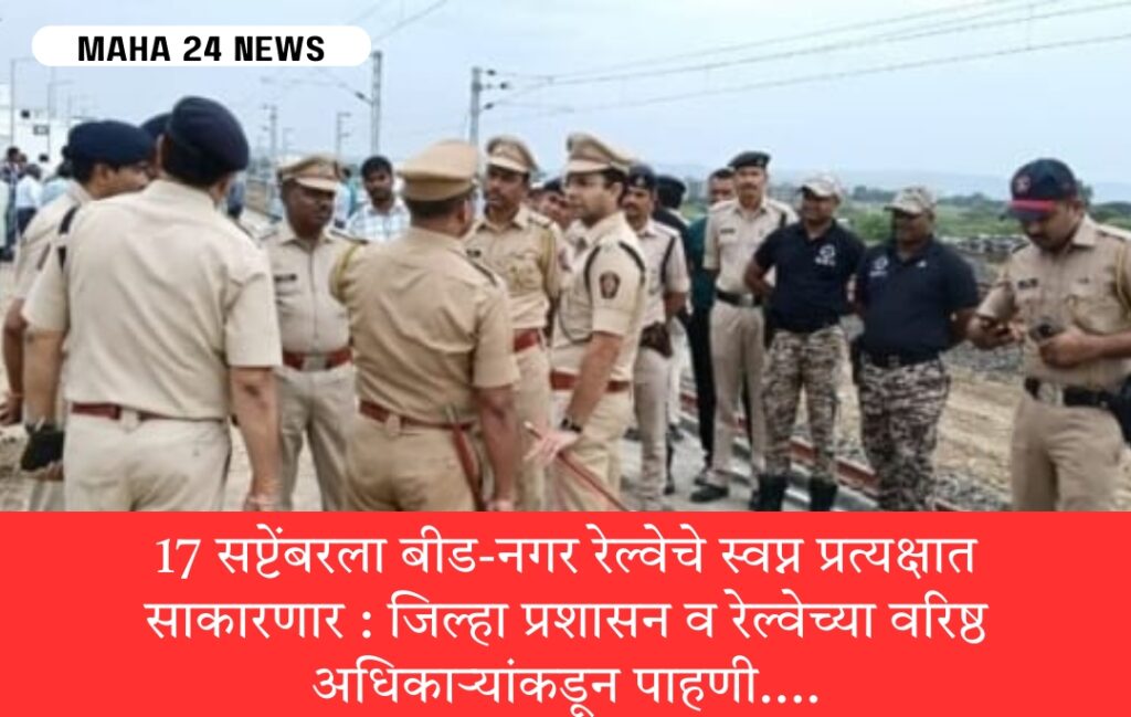 बीड : बीड जिल्ह्यात बहुचर्चित असलेली रेल्वे प्रत्यक्षात 17 सप्टेंबर 2025 मराठवाडा मुक्ती संग्राम दिनी रोजी सुरू होणार आहे. त्या अनुषंगाने जिल्हा प्रशासनाची जय्यत तयारी सुरू आहे. जिल्हाधिकारी विवेक जॉन्सन, रेल्वेचे वरिष्ठ अधिकारी ब्रिजेशकुमार सिंग, जिल्हा पोलीस अधीक्षक नवनीत काँवत व इतर अधिकारी यांनी आज बीड येथील रेल्वे स्टेशन परिसराची पाहणी केली. बीड-नगर रेल्वेला 17 सप्टेंबरला हिरवी झेंडी दाखविण्यासाठी मुख्यमंत्री देवेंद्र फडणवीस, उपमुख्यमंत्री अजित पवार हे येणार आहेत. जिल्ह्यातील लोकप्रतिनिधी, जनता या कार्यक्रमास मोठ्या प्रमाणात उपस्थित राहणार आहेत. प्रत्यक्ष कार्यक्रमाच्या ठिकाणी बैठक व्यवस्था कशी असायला पाहिजे, पार्किंग व्यवस्था कशी असावी, व्हीआयपी आणि इतर रस्ते याबाबत यावेळी चर्चा करण्यात आली. कार्यक्रमाचे नियोजन आणि कायदा व सुव्यवस्थेच्या दृष्टिकोनातून जिल्हाधिकारी विवेक जॉन्सन आणि पोलीस अधीक्षक नवनीत काँवत हे स्वतः प्रत्येक बाबींचा आढावा घेवून नियोजन करत आहेत.